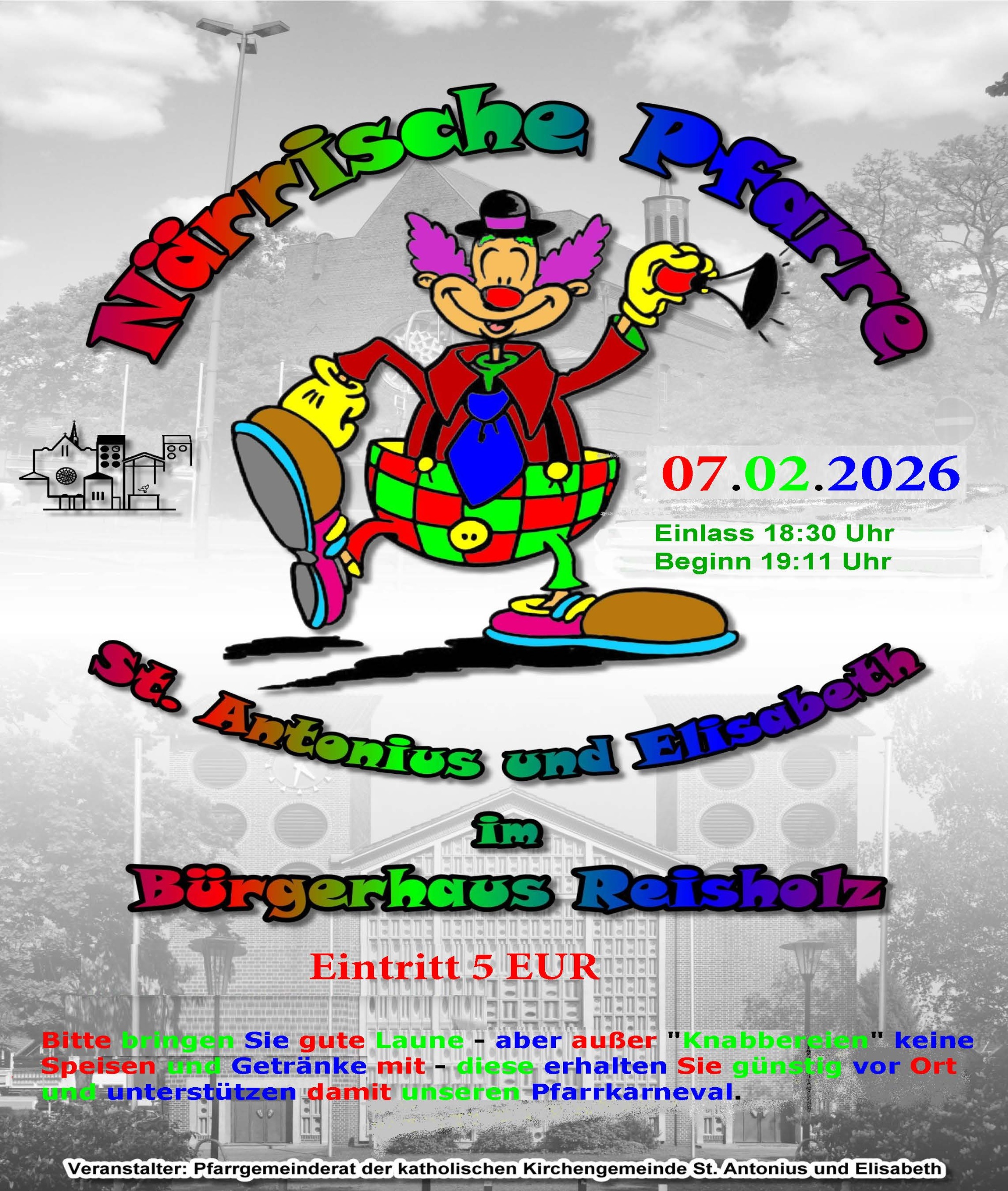 Nicht verkaufte Karten sind anschließend im Pastoralbüro zu erwerben. Der Pfarrkarneval findet auch in 2026 wieder im Bürgerhaus Reisholz statt.